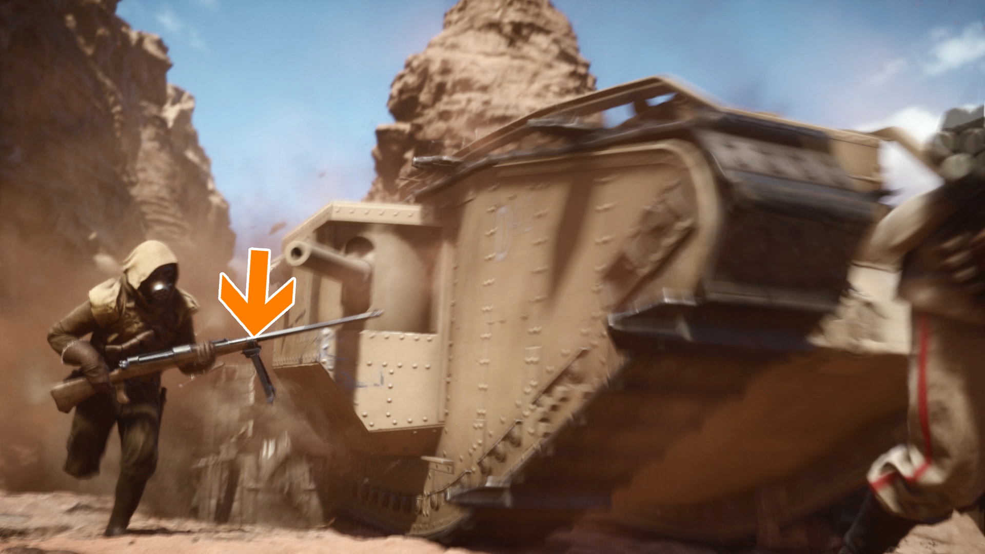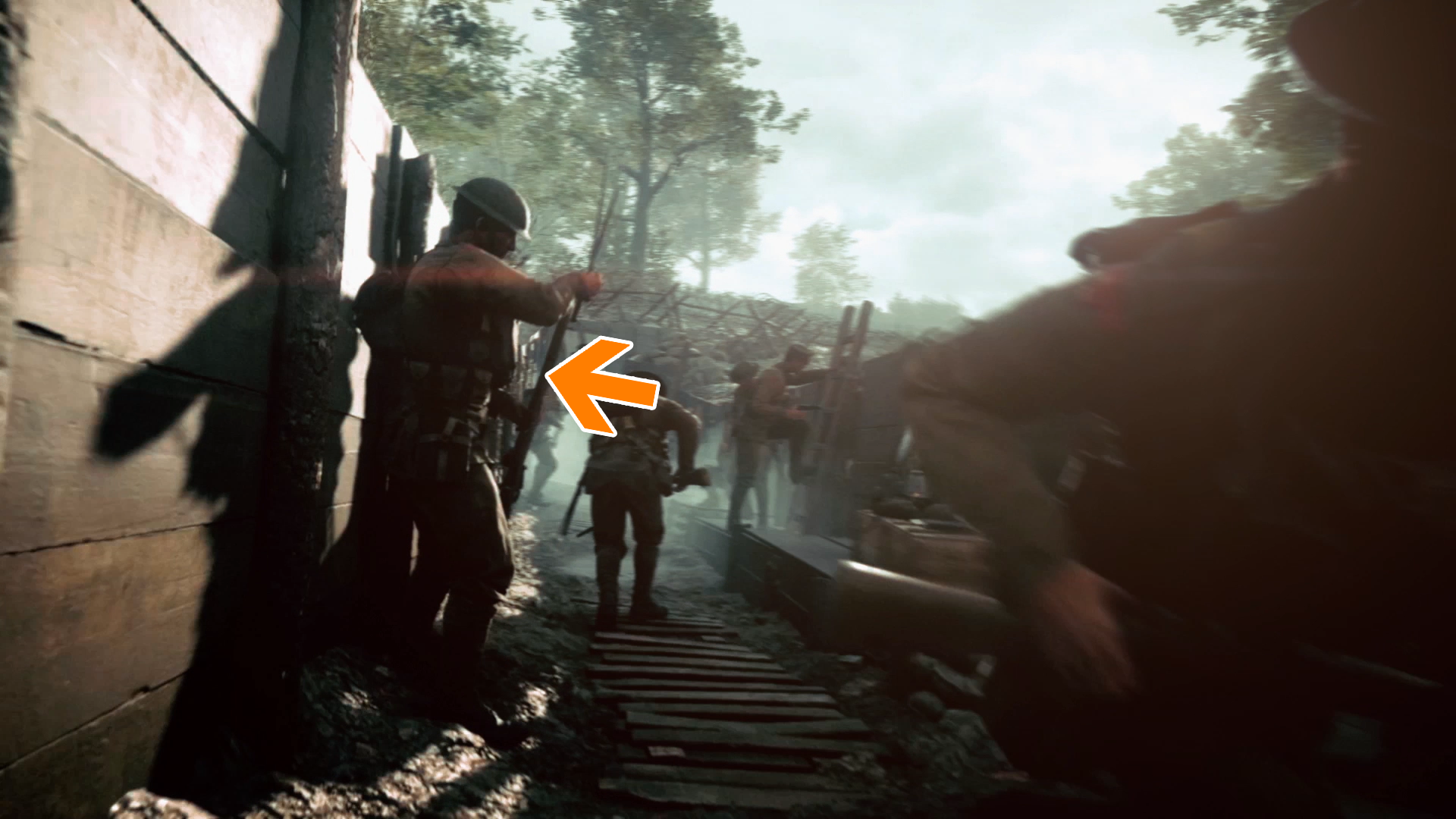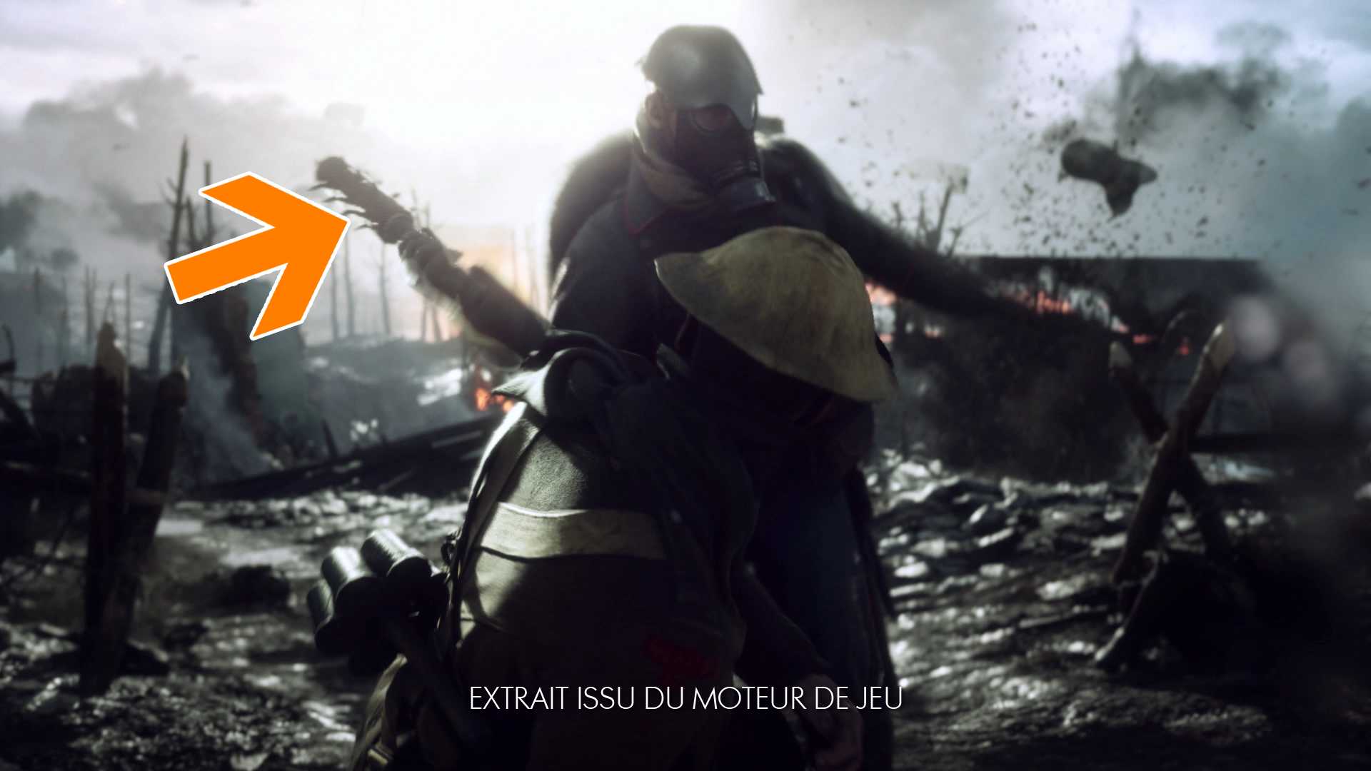 Quelques armes ont été aussi confirmées. En vrac, les armes individuelles: le lance-flamme, le pistolet Mauser C96, le classique pistolet Colt 1911, un fusil à pompe M1897 (le fameux Trench Gun), un fusil mitrailleur Bergmann MP18, une mitrailleuse Lewis Mk 1, un gourdin clouté, une pelle de combat, un fusil anti-tank Mauser 1918 T, un fusil Lee Enfield et bon nombre de fusils à baïonnettes. Pour le reste, nous avons noté un canon d’artillerie Haubitze A67 et quelques accessoires comme le gaz moutarde, le masque à gaz (forcément), des charges explosives et une armure de tranchée.