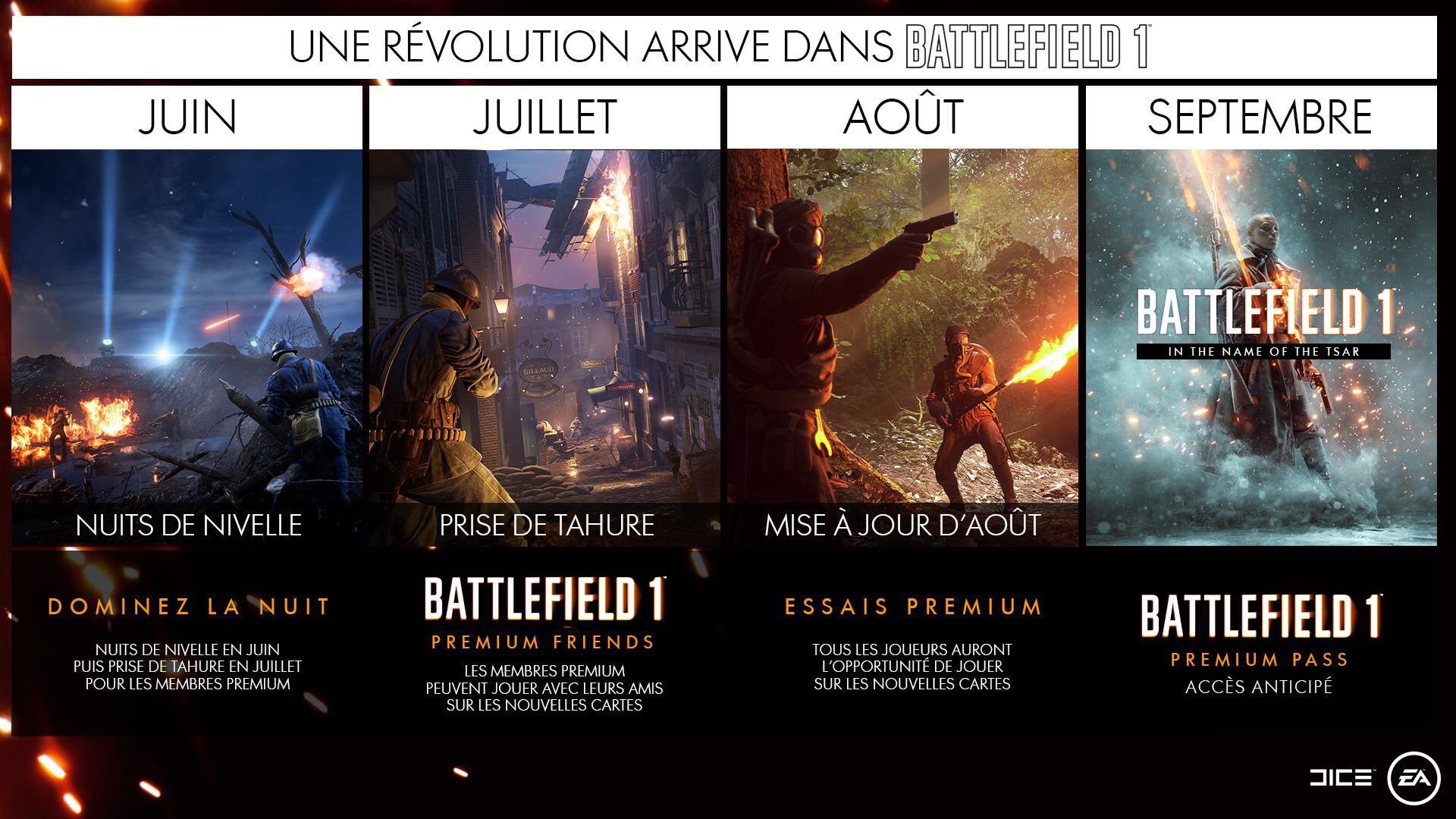Une fois Prise de Tahure sortie, essais Premium sera lancé. Essais Premium permettra à tous les joueurs d’accéder aux cartes exclusives du Pass Premium. De plus Amis Premium reste disponible jusqu’à la Gamescom. Pour rappel, Amis Premium permet à ceux qui possèdent le Pass Premium d’inviter leurs amis sur les cartes auxquelles ils n’ont normalement pas accès.