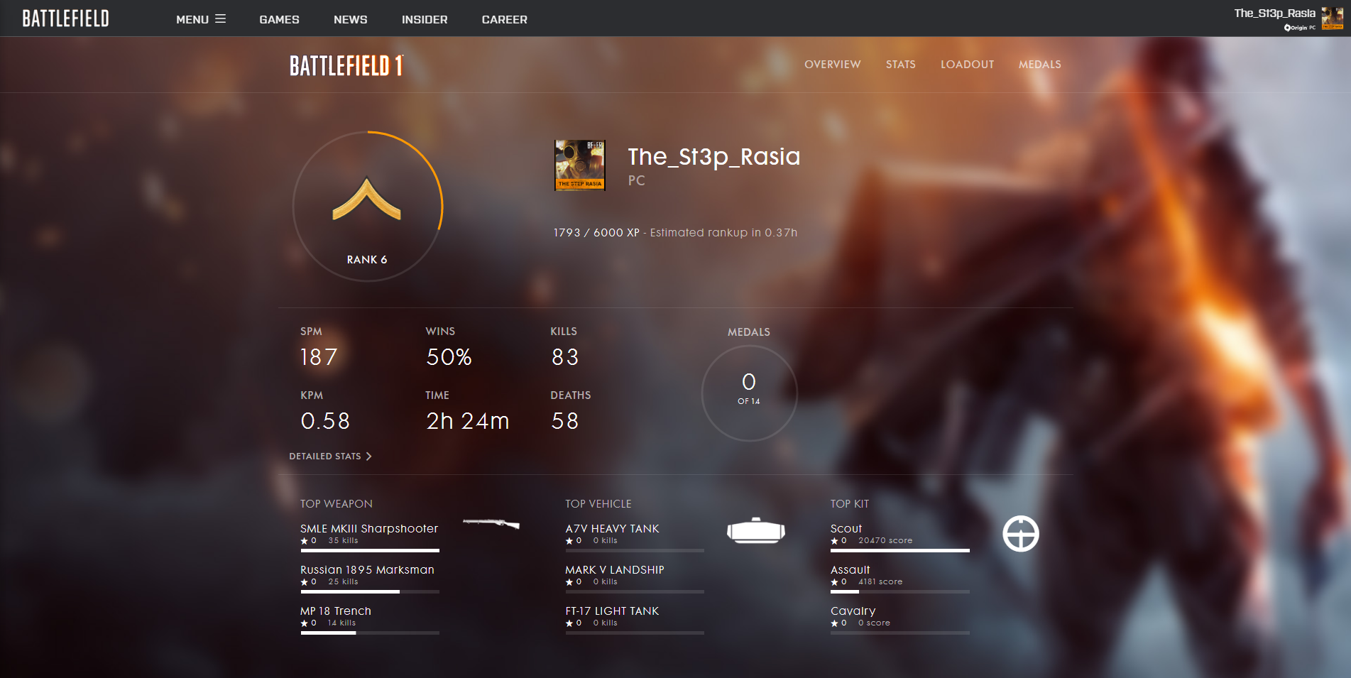 Pour connaître vos stats de Battlefield 1 il vous suffira tout simplement de cliquer sur "Battlefield 1".