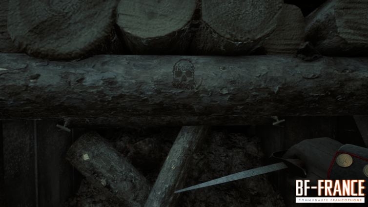Sous le « pont » en bois, dans la tranchée, il y a une sorte de panneau où il est écrit MUNITION. Si vous le détruisez-vous allez découvrir un crâne Master Man. Ce qui veut dire que vous êtes au bon endroit, à savoir, l’entrée du passage secret.