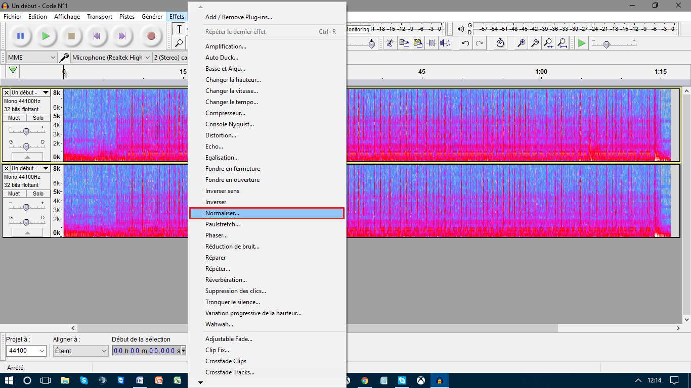 Enfin rendez vous dans l’onglet Effet puis sélectionné Normaliser et régler sur -2 dB.
