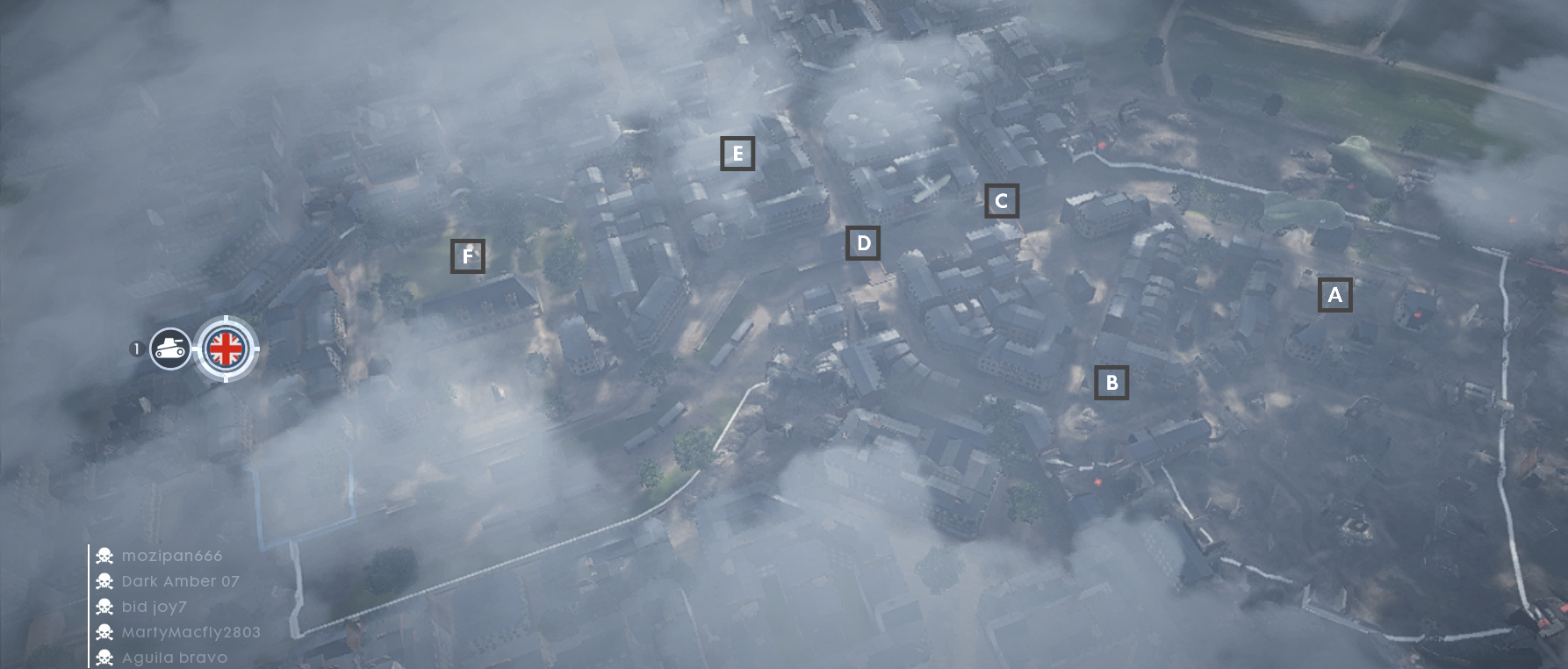 Les combats auront lieu sur quasiment toutes les zones de captures car il est facile pour une équipe de contourner le centre de la carte pour arriver à un point tel que A ou F.