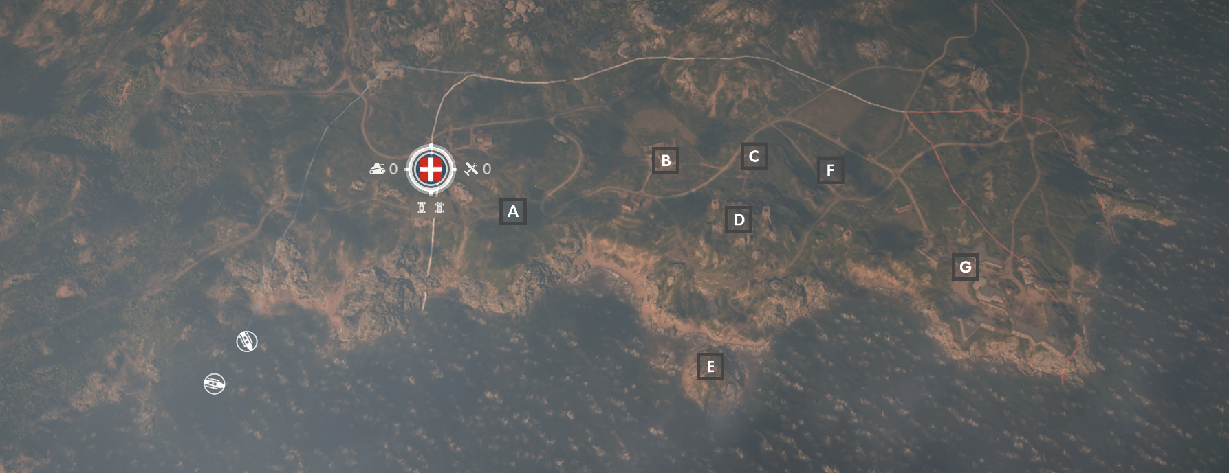 Aux frontières de l’empire est une carte immense. En conquête, vous aurez 7 points à capturer. Vous constaterez que les points A et G sont disposés prêts de chaque spawn de chaque équipe mais que les points B, C, D et F sont proches les uns des autres ce qui promet de longs combats pour nettoyer la zone.