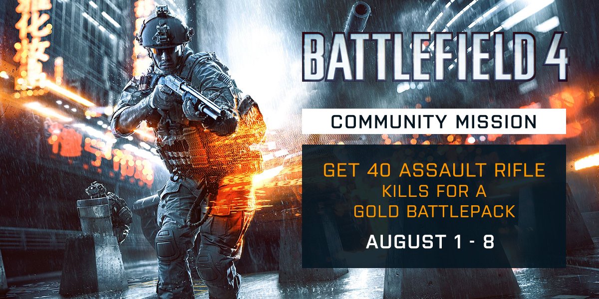 Enfin, sachez qu'une mission de la communauté est active sur BF4. Ainsi, il vous faudra tuer 40 ennemis avec un fusil d'assaut pour obtenir un Battlepack or.