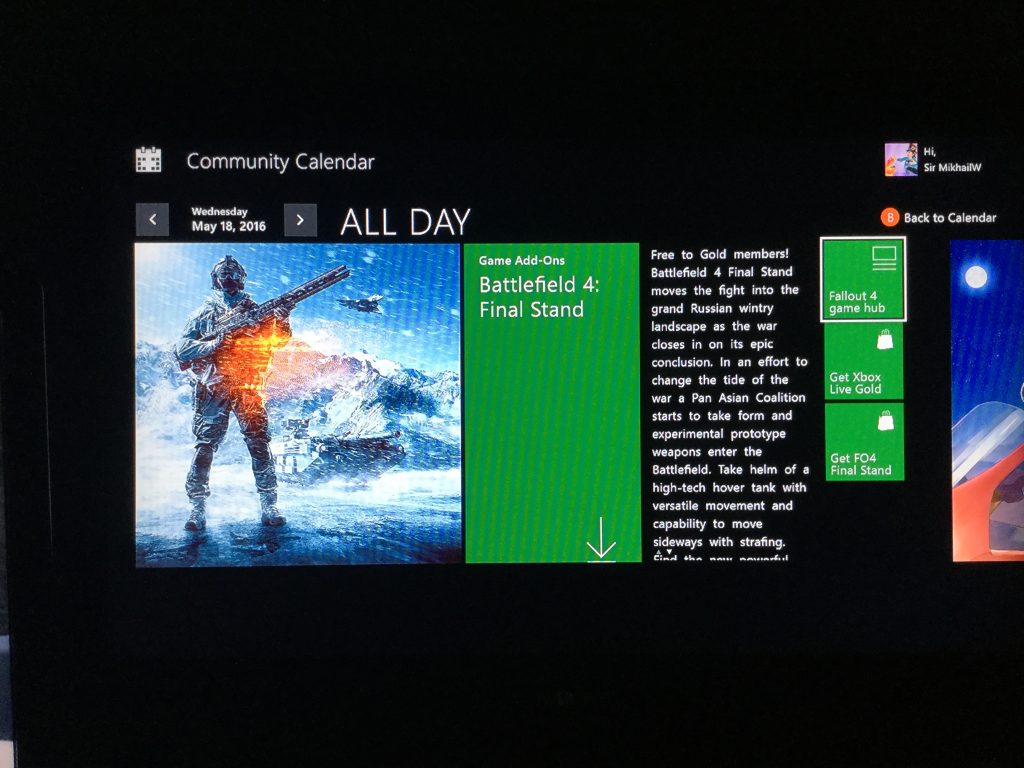 Un joueur Xbox a trouvé dans le calendrier de communication d'XboxLive, annonçant que Final Stand serait gratuit à partir du 18 mai prochain. Si la rumeur est vraie, les joueurs de Battlefield 4 pourraient se le procurer.