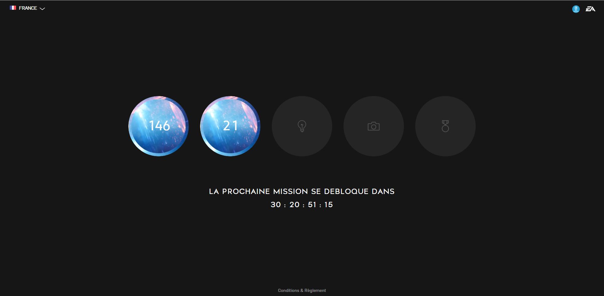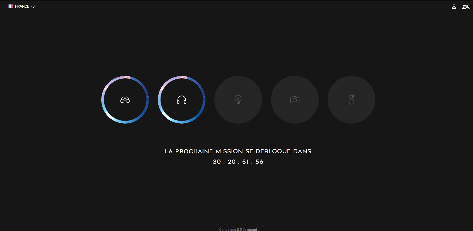 Pour participer, rien de plus simple, il suffit de cliquer sur l'une des missions disponibles, puis de choisir la région sur laquelle on souhaite participer. Autant choisir la région France, ce sera bien plus simple pour vous, puis de se connecter avec son compte EA. Vient ensuite le fait de découvrir l'énigme et de la déchiffrer en saisissant le mot clé que vous avez trouvé. Si vous donnez la bonne réponse, vous devez répondre en un maximum de mots (24 de mémoire) à la question posée. Une fois cela fait, vous aurez votre rang au niveau national et mondial comme suit