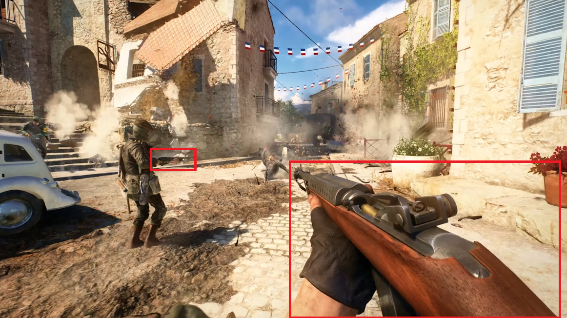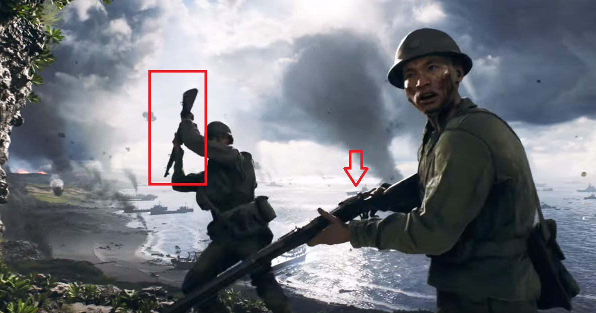 Cerise sur le gâteau, un aperçu d’un futur théâtre de guerre prenant place pendant la Guerre du Pacifique. Effectivement, l’armée américaine et l’empire du Japon viendront se joindre aux factions déjà existantes dans Battlefield V, nous avons même le droit à un vif aperçu d’une arme mythique : le M1 Garand. (le soldat japonais tiens dans ses mains un Arisaka également).