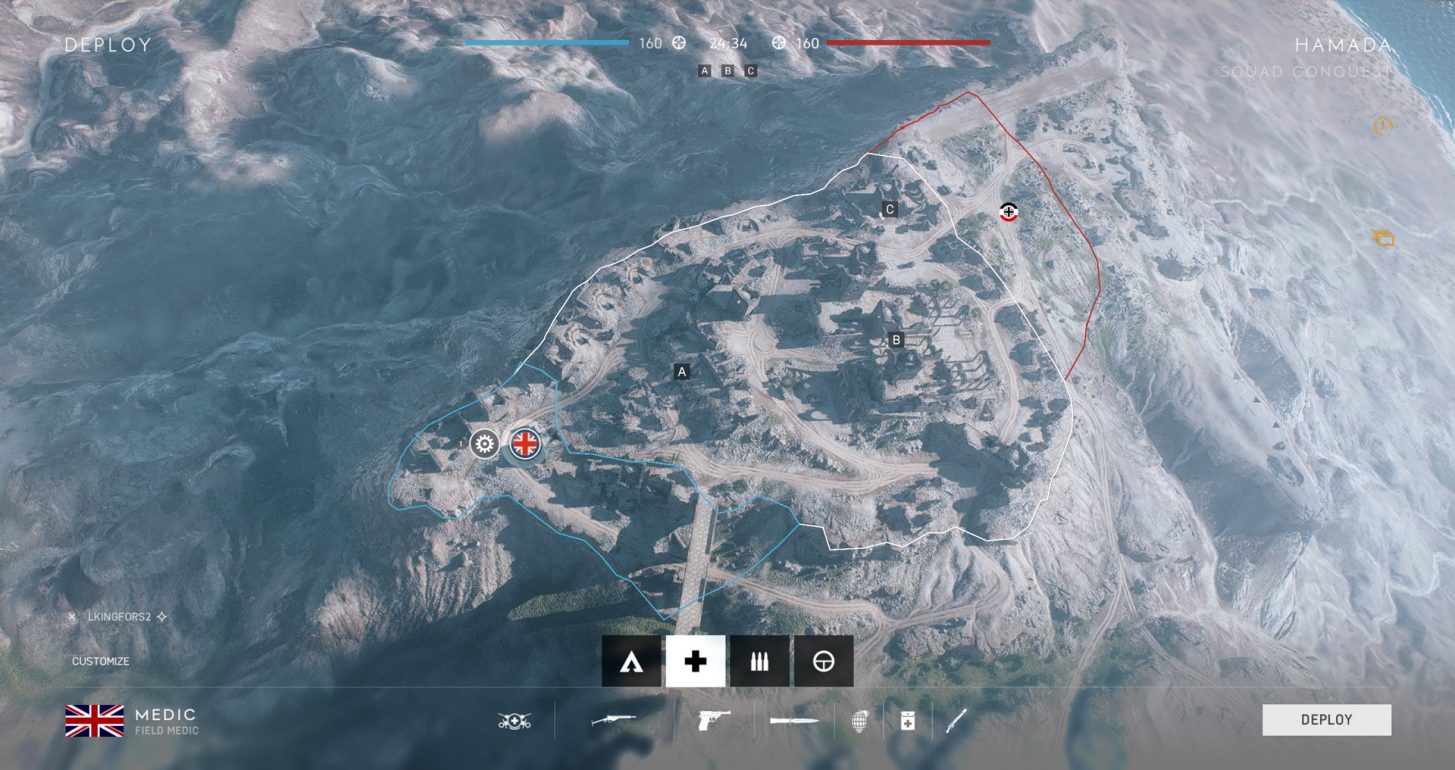 16 joueurs répartis dans 2 équipes se battent pour le contrôle de 3 drapeaux. Il n'est possible d'apparaître que dans les QG et l'accès aux véhicules est limité. Grâce à des voies dégagées et l'organisation des zones de combat, les joueurs peuvent anticiper les mouvements de l'ennemi pour organiser leurs défenses et les repousser.